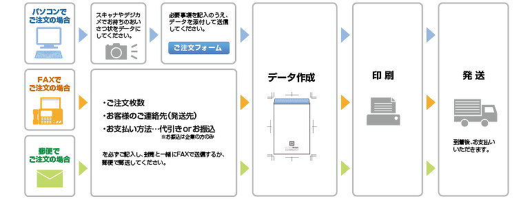 イラストレータ、ワード、エクセル、手書き原稿等でお客様が作成されたデータを印刷します。同窓会の案内などにお気軽にご用命ください。