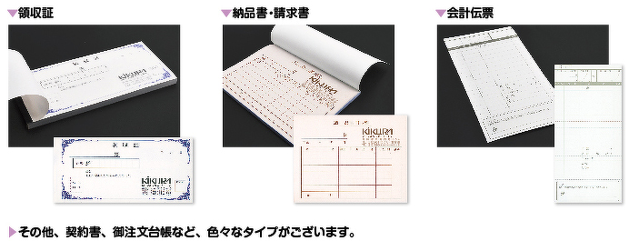 納品書、領収証、作業報告書、作業指示書、契約書などにご利用いただけます。