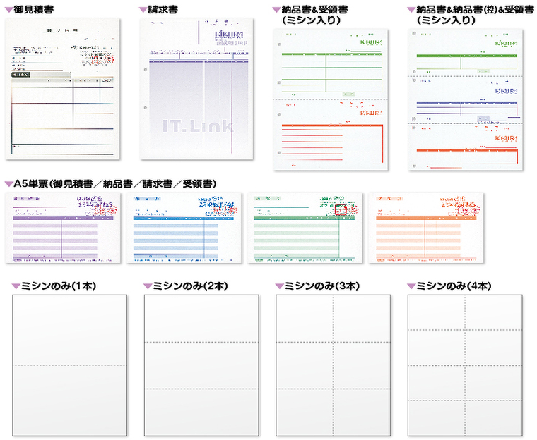 ドットインパクトプリンター用伝票です。帳票と単票があります。