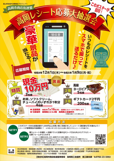 高岡市商店街連盟さんから高岡レシート応募大抽選会のお知らせです!