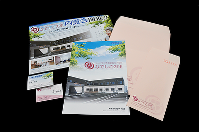 2014年11月17日(月) サービス付高齢者向け住宅 なでしこの里 チラシ他 なでしこの里 内覧会開催のチラシを作成しました。 その他、パンフレットと封筒、名刺も作らせていただきました。 竹林商店さん、ありがとうございました。