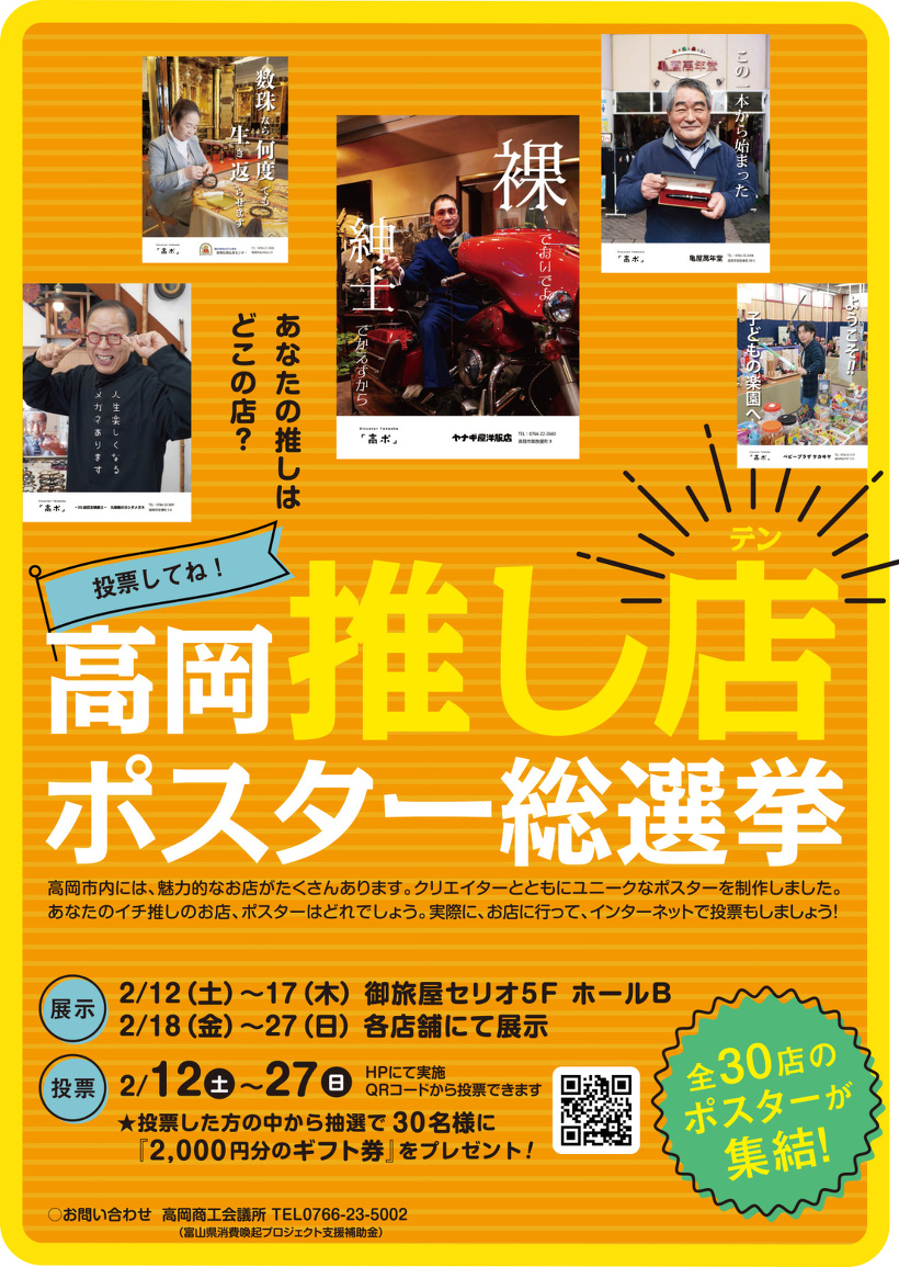 高岡市内の魅力的なお店をクリエイターと共に面白いポスターを制作致しました。