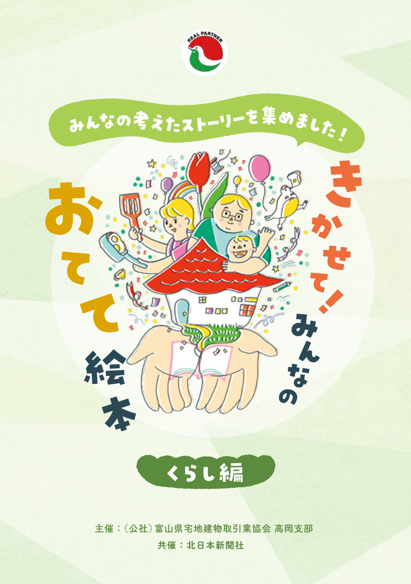 今回の募集テーマは「くらし」 くらし・おうち・かぞく・なかよし・とやま などのキーワードを参考に、自由にお話を募集した作品が、可愛いイラストと共に掲載しています!